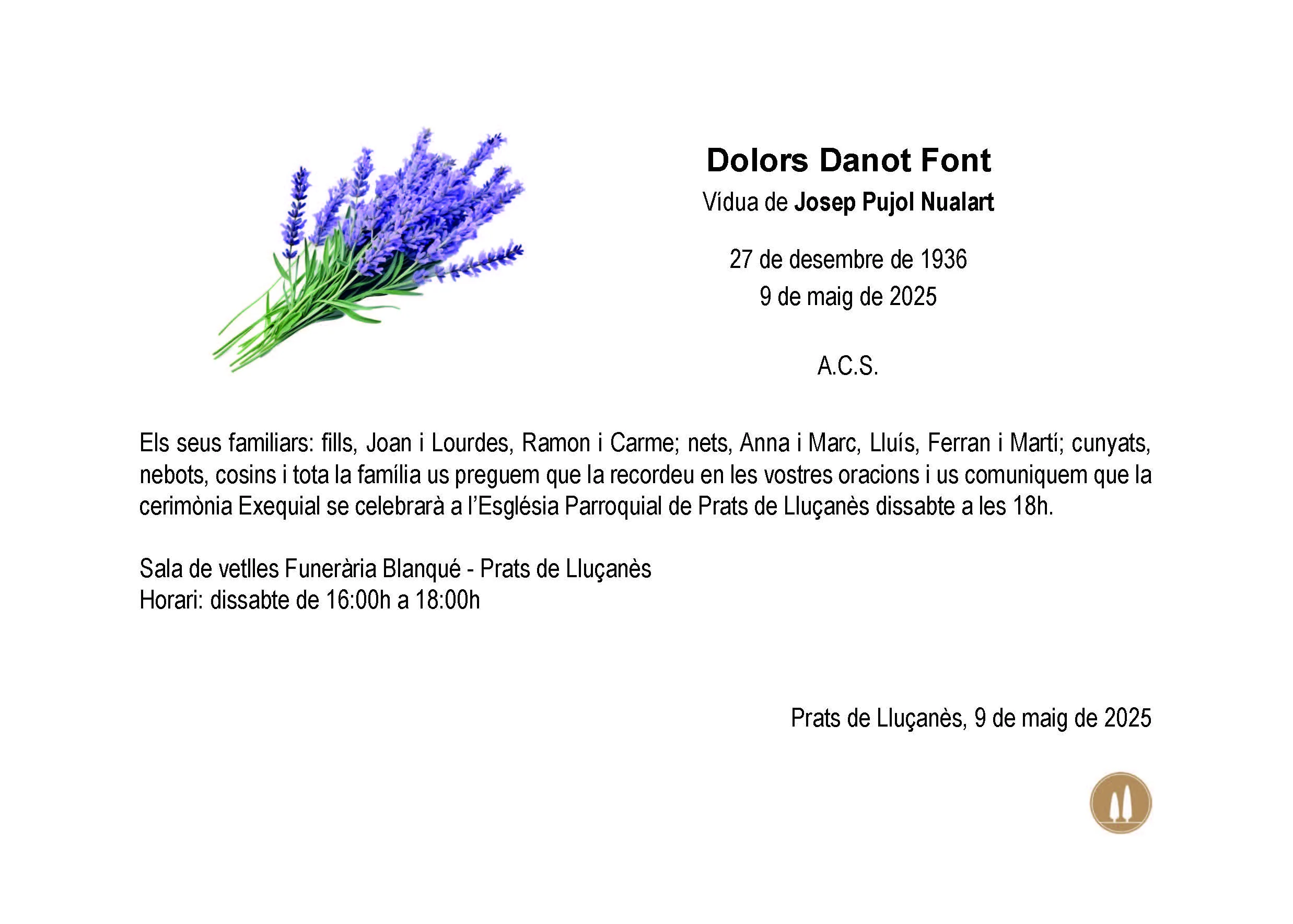 Dissabte 10 de maig de 16h a 18h a la Sala de Vetlles de Funerària Blanqué, a Prats de Lluçanès
