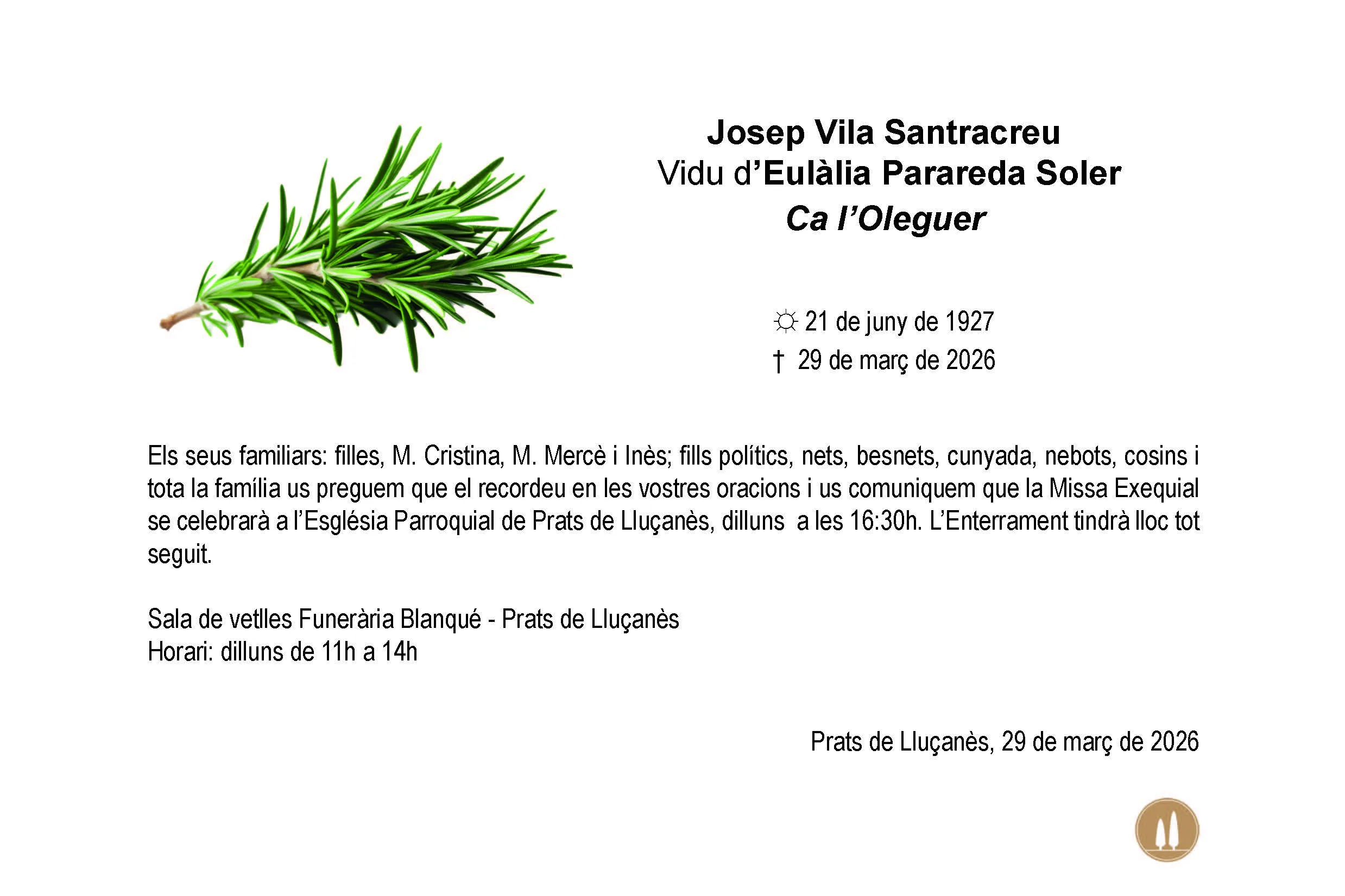 Dilluns de 11h a 14h a la sala de vetlles de Funerària Blanqué a Prats de Lluçanès