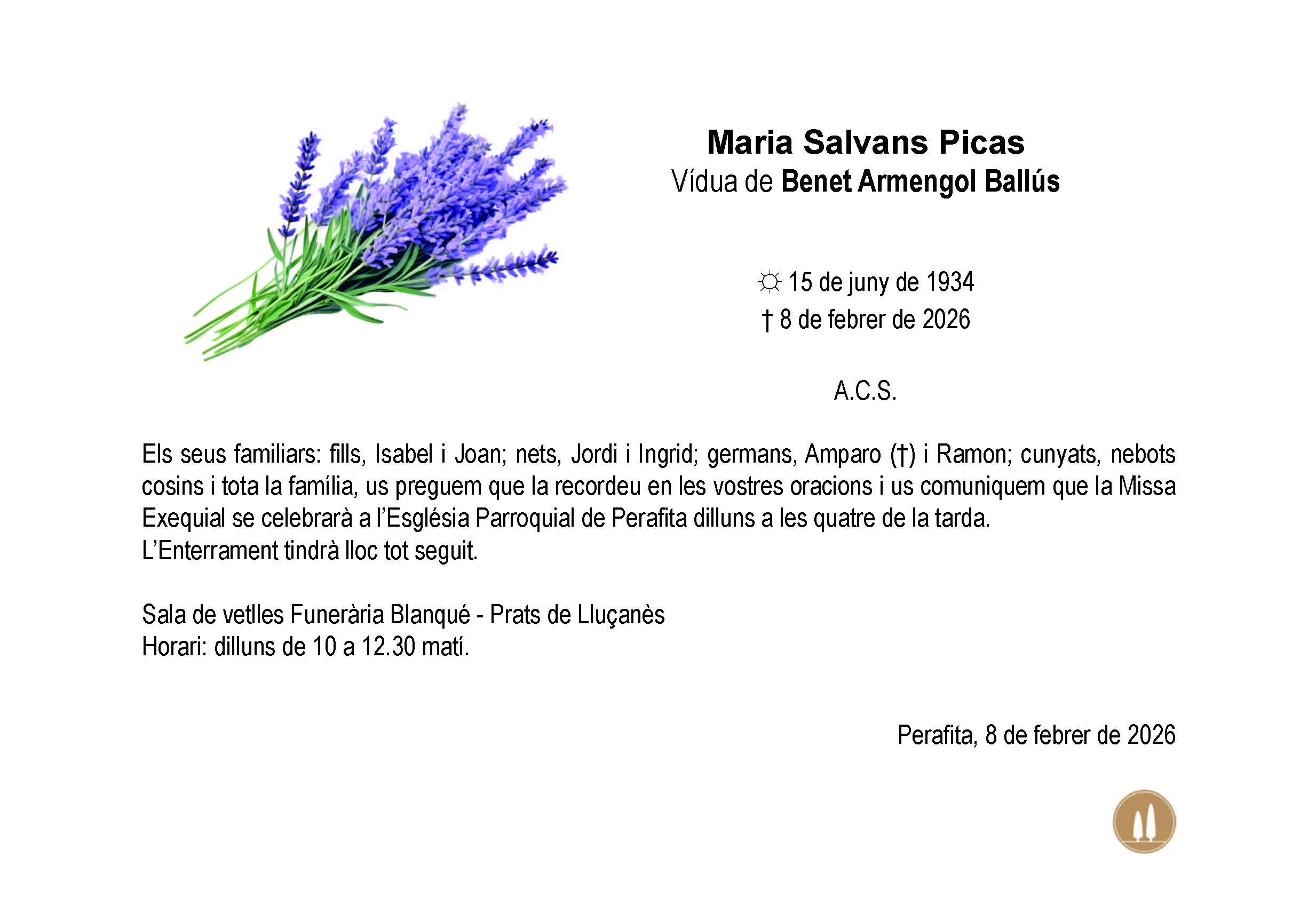 Dilluns 9 de febrer de 10 a 12.30 del mati a la sala de vetlles de Funerària Blanqué a Prats de Lluçanès