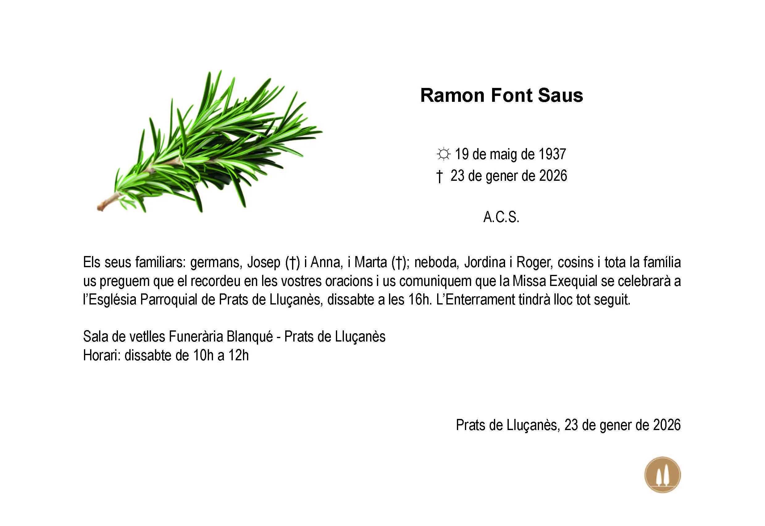 Dissabte 24 de gener de 10h a 12h a la sala de vetlles de Funerària Blanqué de Prats de Lluçanès